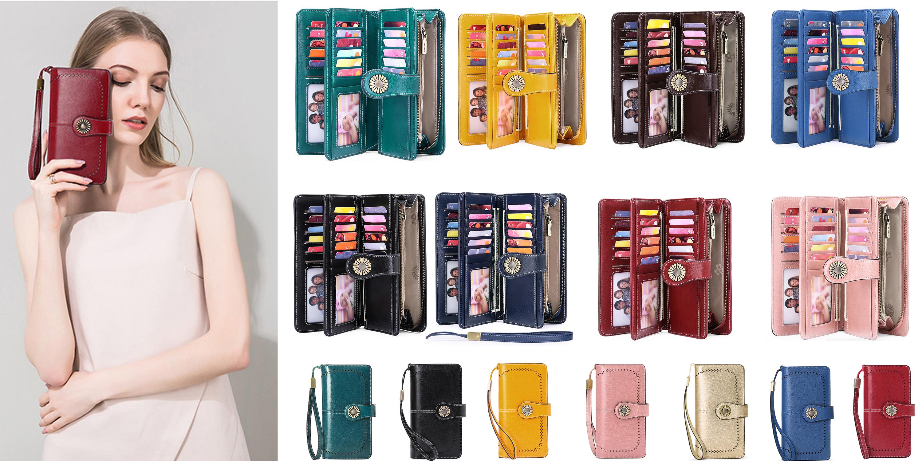 SENDEFN Wallets for Women Leather Credit Card Holder with RFID Blocking Large Capacity Wristlet - SENDEFN Store